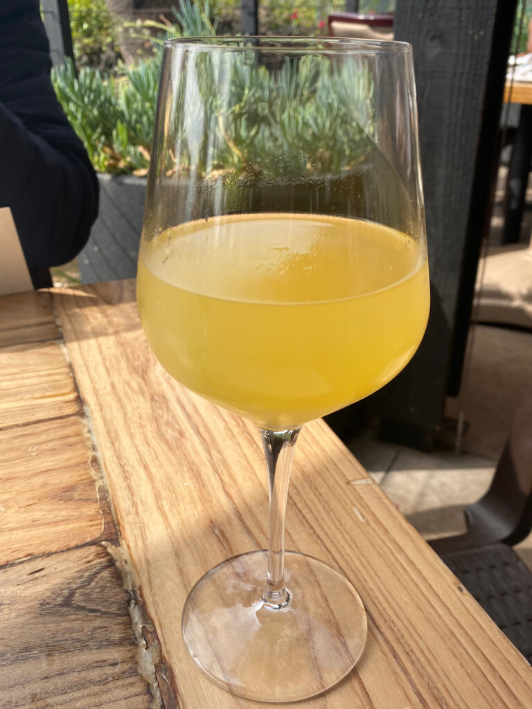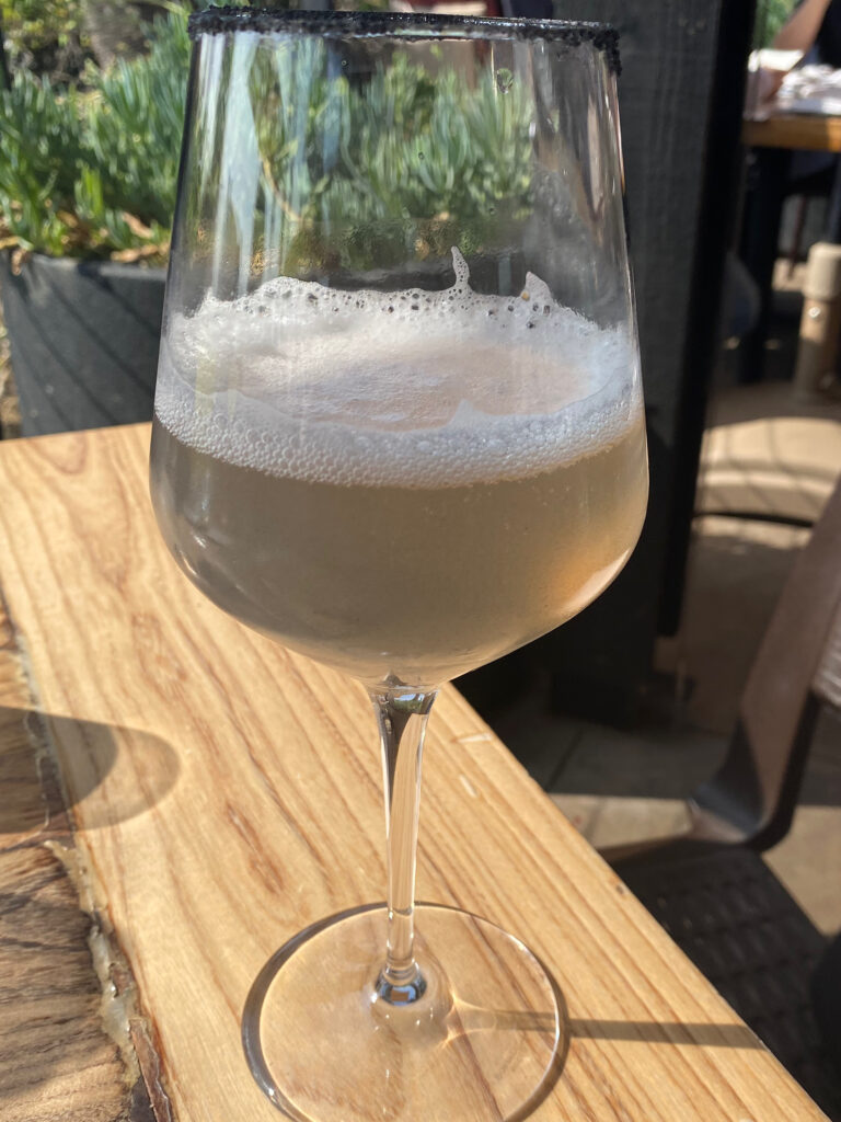 So I finally got the chance to come and eat here last year. I came here on a Sunday so they had a special of bottomless mimosas. I ordered the PINEAPPLE JALAPEÑO MIMOSA minus the Jalapeño. Then after I tried the LAVENDER ACTIVATED CHARCOAL LEMONADE MIMOSA. It had charcoal all around the rim. It was so good. When my sister had ordered it, it looked good so I had to order it and try it for myself.