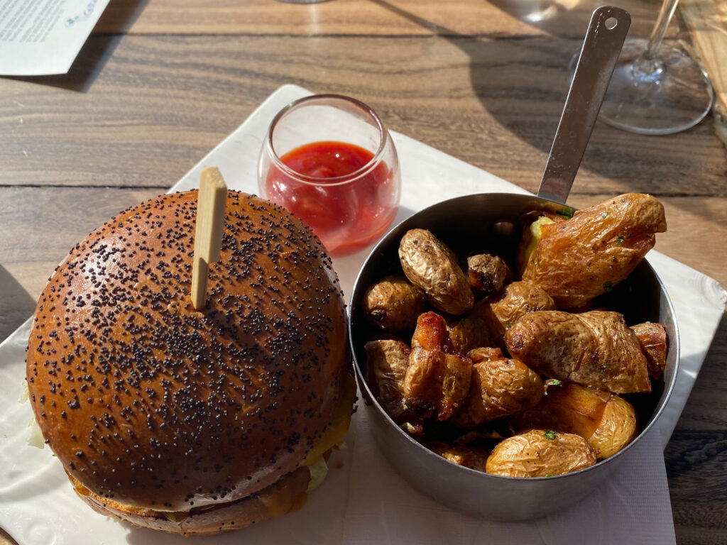 For lunch I ordered the DOUBLE PATTY SMASH BURGER, It came with Lettuce, Tomato, Cheddar Cheese, their Secret Sauce, Caramelized Onions on a Brioche Bun. Instead of Garlic Fries I ordered the waffle fries. Which was a good decision.