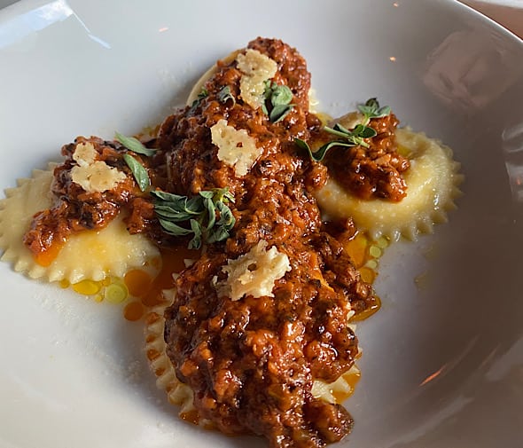 Next was the ravioli it had a mushroom bolognese sauce. Inside had ricotta cheese and topped with parmesan cheese. This was good but my least favorite.
