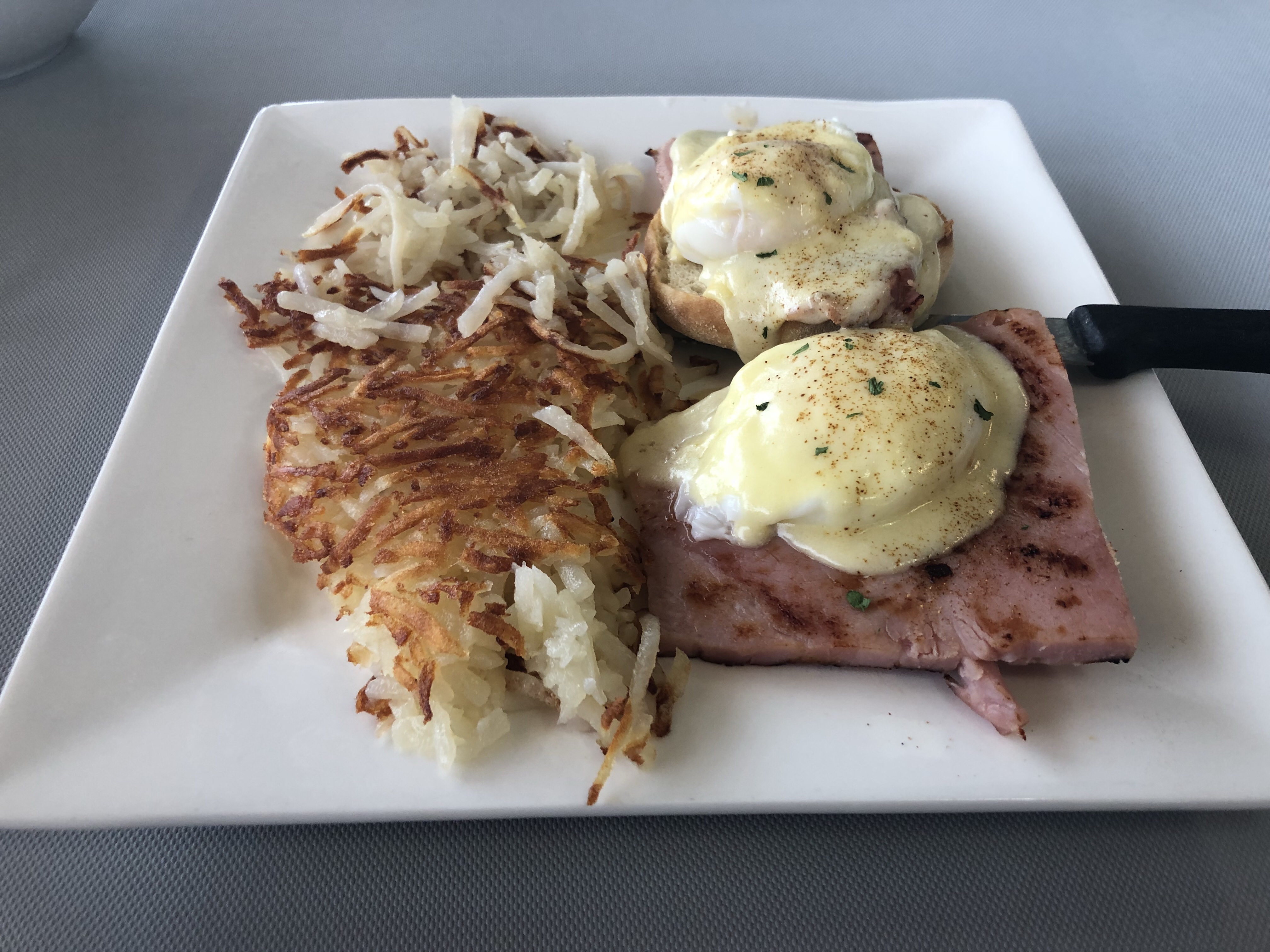 I ordered the traditional Eggs Benedict. I had the choice of Hash browns or fresh fruit. I got the hash browns. I wanted taste how they were.